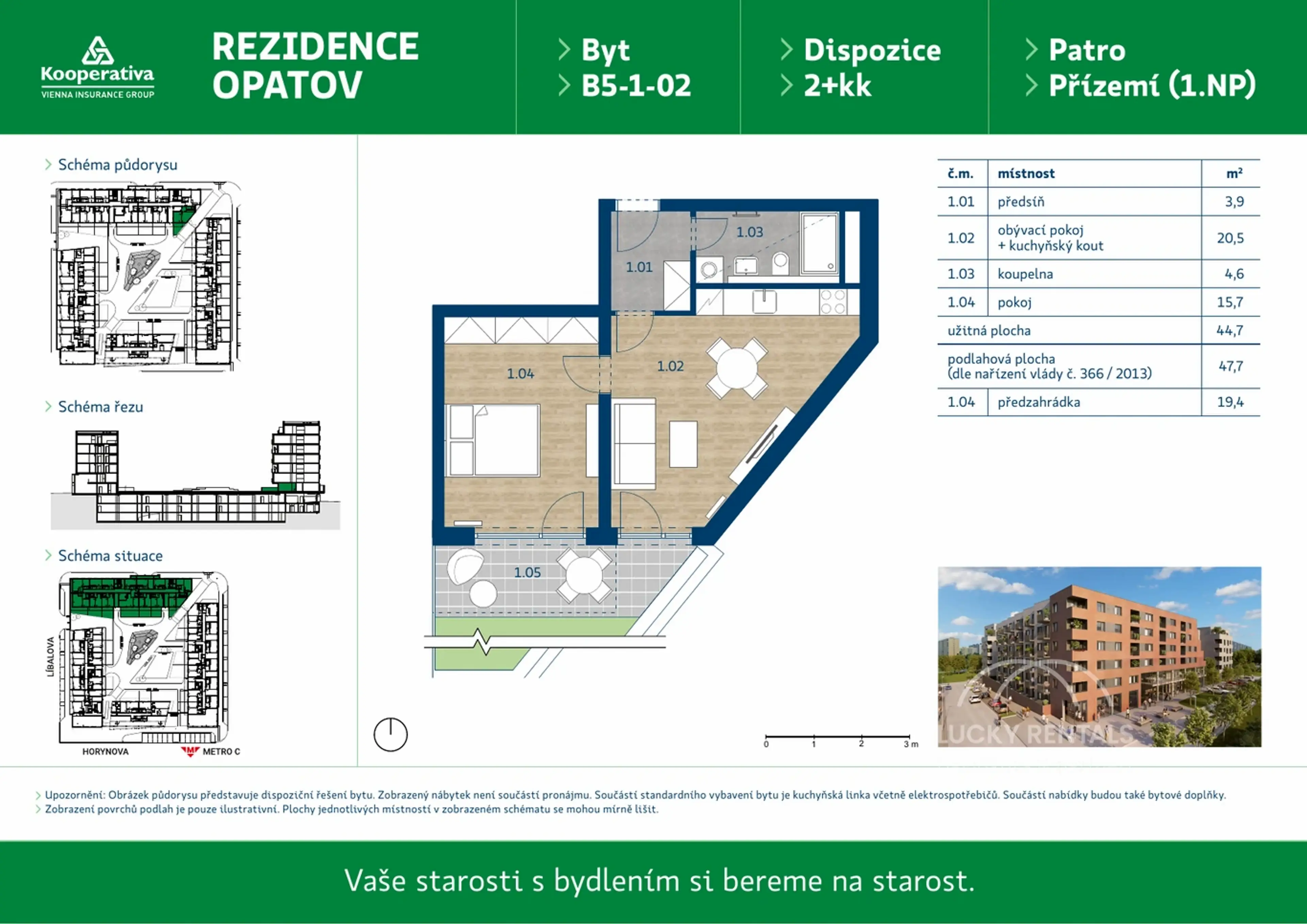 721 030 342Pronájem bytů v Rezidenci Opatov zajišťuje partnerská realitní kancelář Lucky Rentals.